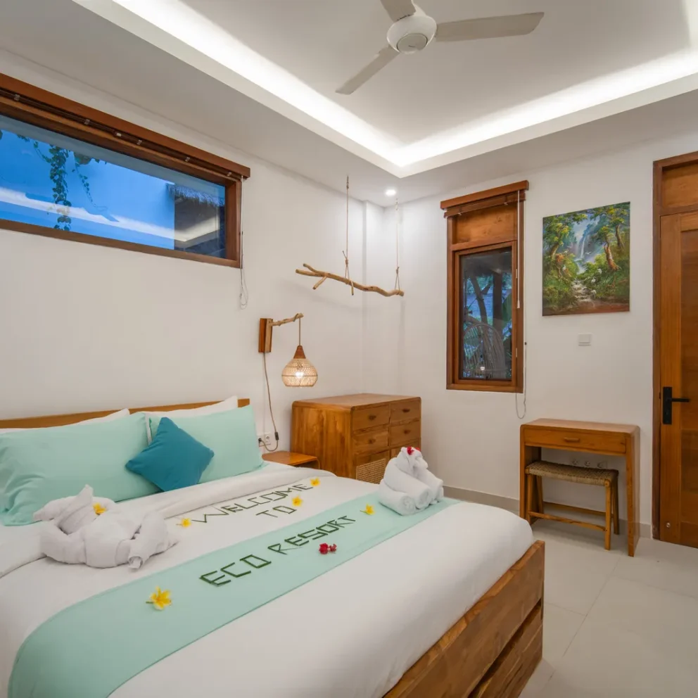 - Traditional alang-alang roofs and locally crafted interiors supporting Balinese artisans
