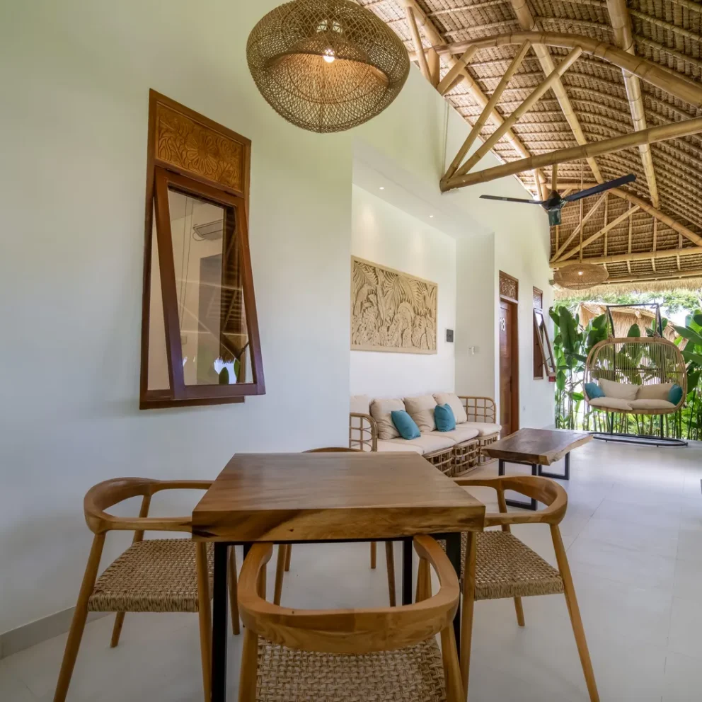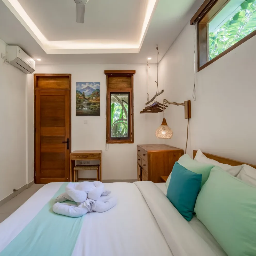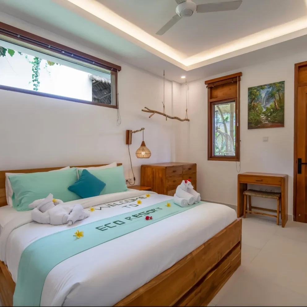 The 2-bedroom boutique villas feature two connected bedrooms, each with a king-size bed, making them an ideal choice for families with children or small groups. The space includes a generous patio with a sitting area and fan, offering a comfortable indoor–outdoor living experience. Each bedroom is equipped with a Smart TV, air conditioning, fan, desk, […]