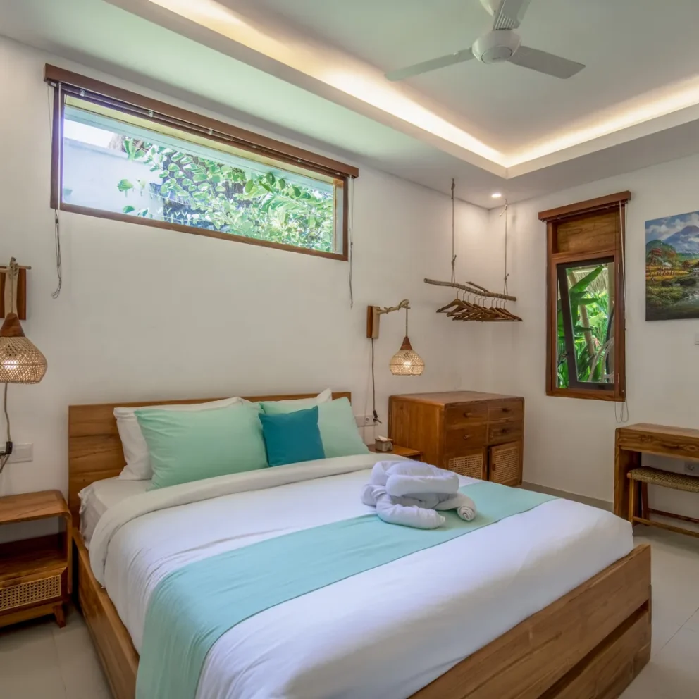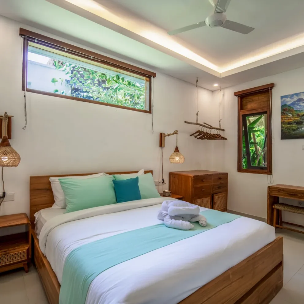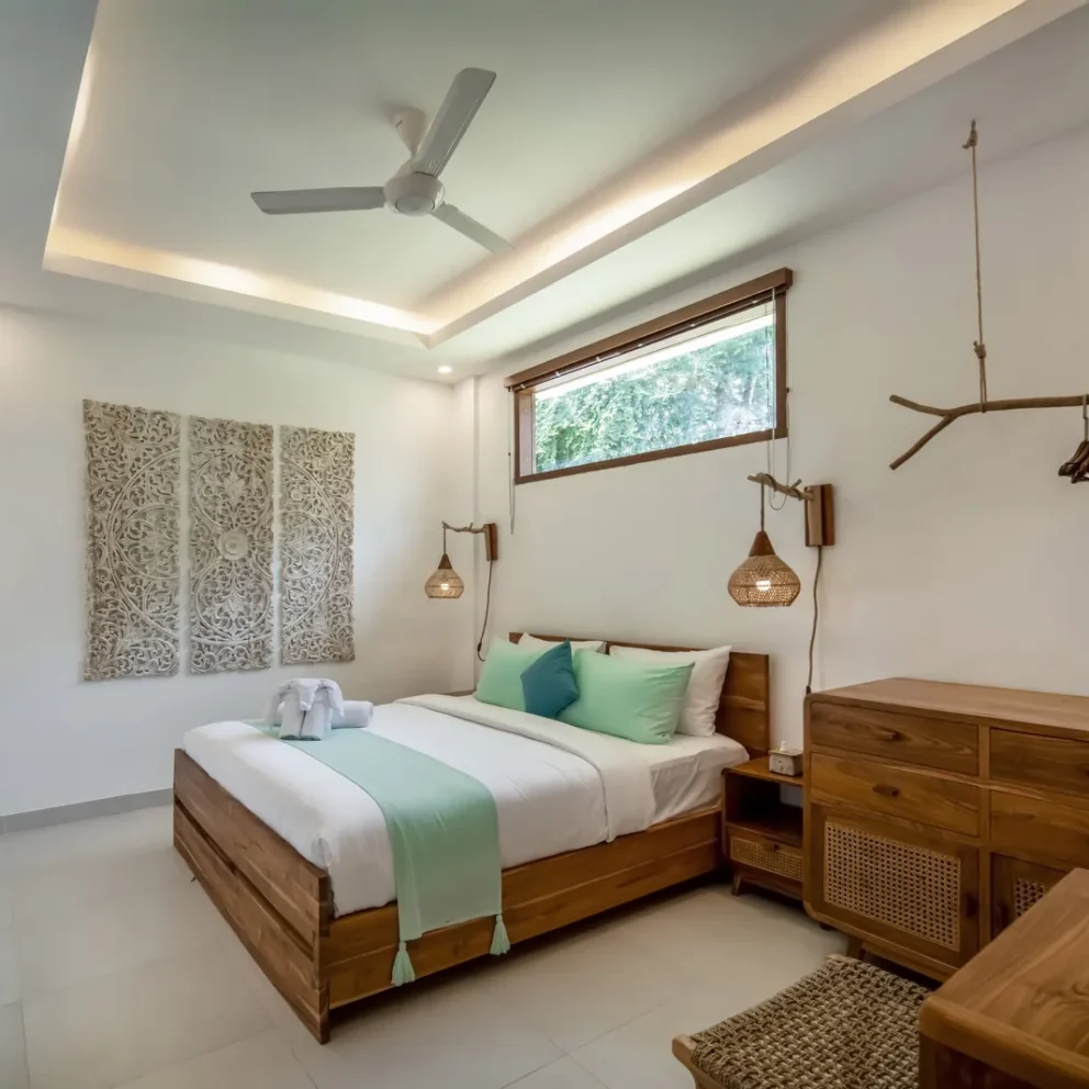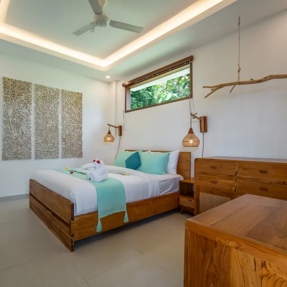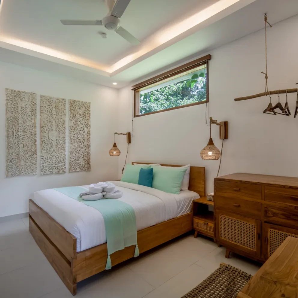 The 2-bedroom boutique villas feature two separate bedrooms, each with a king-size bed, making them an ideal choice for families with children or small groups. The space includes a generous patio with a sitting area and fan, offering a comfortable indoor–outdoor living experience. Each bedroom is equipped with a Smart TV, air conditioning, fan, desk, […]