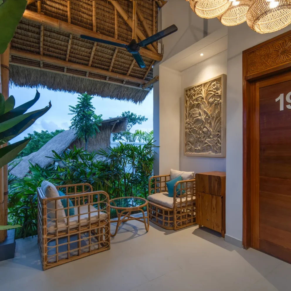 The 1-bedroom boutique villa offers a comfortable king-size bed and a seamless indoor–outdoor living experience, featuring a spacious patio with a sitting area and fan—ideal for guests who enjoy being close to nature. The room is well-appointed with air conditioning, a ceiling fan, a desk, wardrobe, and a fully stocked minibar with snacks. Guests can […]